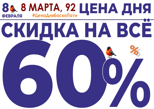 8 февраля СКИДКА НА ВСЁ 60%!